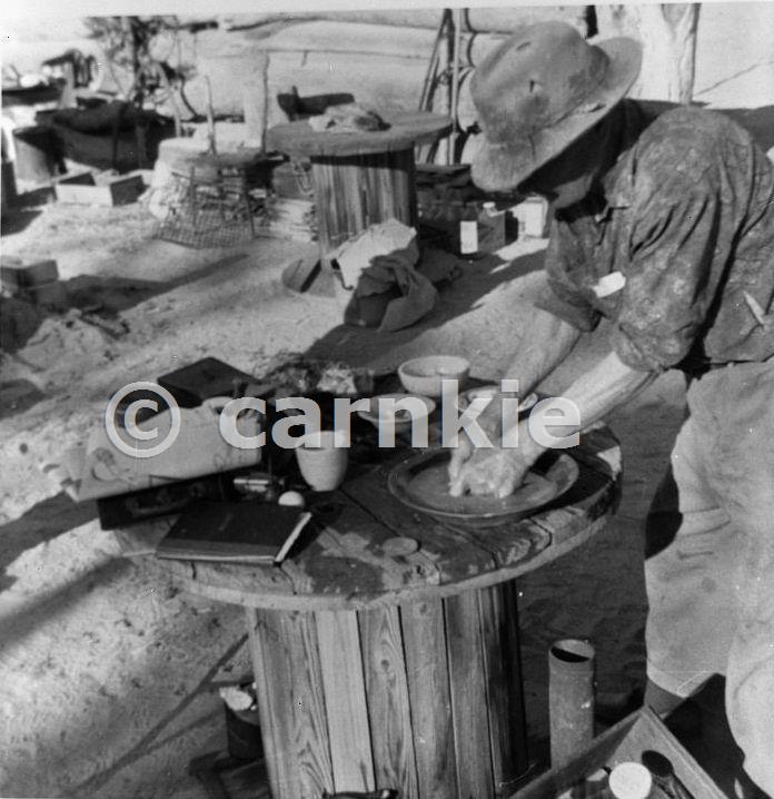 HISTORIC PHOTOGRAPH SHOWING BILL KEYS PROBABLY WRINGING AMALGAM IN CHAMOIS, FORCING MERCURY INTO GOLD PAN. Courtesy Library of Congress, Prints & Photographs Division, HAER, Reproduction HAER CAL,36-TNPAL.V,2-37