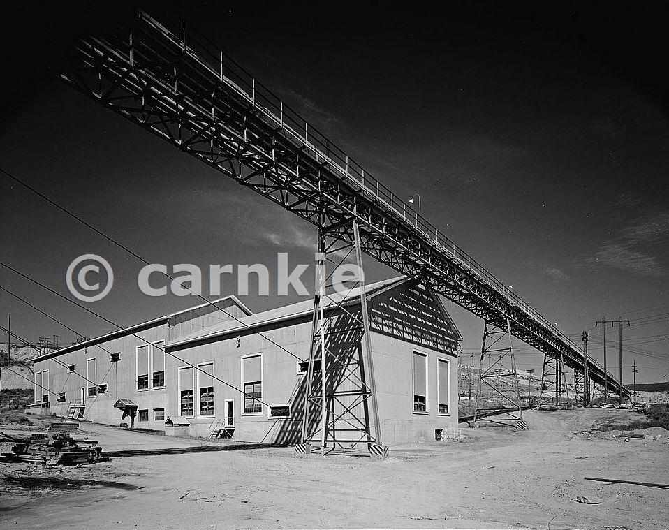 HOIST HOUSE OF THE KELLEY MINEYARD, LOOKING NORTHEAST, WITH THE OVERHEAD PIPE TRESTLE ALSO VISIBLE Courtesy Library of Congress, Prints & Photographs Division, HAER, Reproduction number HAER MONT,47-BUT.V,1-E-4