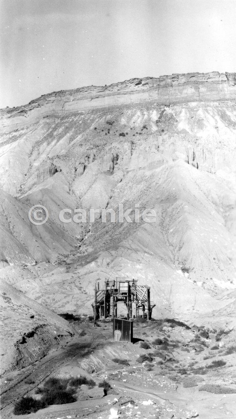 Service coal mine at foot of Book Cliffs. Hoisting plant and tipple in foreground. Cables lead to mine in Palisade Coal near foot of vertical sandstone cliff, northeast of Grand Junction. Mesa County, Colorado. 1927. Courtesy U.S. Geological Survey. http://www.usgs.gov