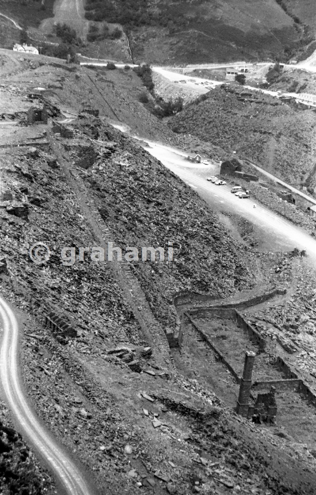 Visible centre is the 1905 drumhouse of the Middle Quarry DInas Incline, Llechwedd in the background, while on the left above the mill is the 5-seat loo on floor 8.
