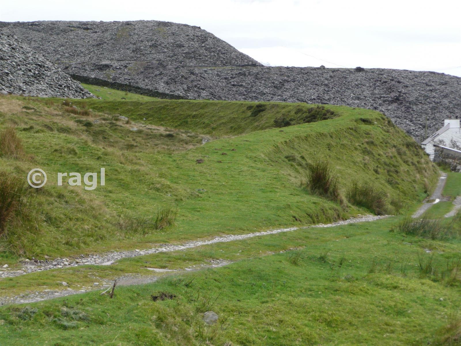 The tramway from Drumhead up to the quarry is a spectacular piece of railway engineering. This is the embanked horseshoe curve, looking upgrade to the quarry.