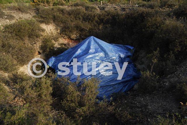 In about 1943, this area was getting a lot of attention for Wolfram and G.A.P Moorhead opened this shaft up to have a look for the source of wolfram in hedge-stones. He couldn't find it, but the shaft remains pretty much the only one open in the area. Whilst stumbling across this shaft about a year ago, we were surprised to note that the usual wire cone had been wrapped with a tarpaulin. We obviously removed it. A subsequent trip down the shaft revealed a fair sized stope with evidence of bat excrement and mud bird nests on the shaft walls. Lord Falmouth has been threatening to do something spectacular with bits of mining land around here and driving past the engine house yesterday, it appears work is finally underway. Looking at the paperwork on "some" website might indicate that a bat survey was not done. Perhaps the tarpaulin just fell there.... Either way, the plans would suggest this shaft, it's habitat and ventilation are about to be plugged and under "Unit 9". Of yet another bloody industrial estate of empty units.
