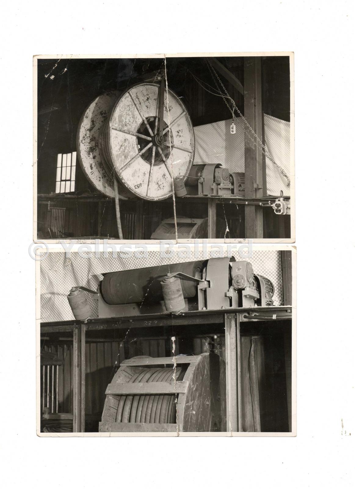 Here is a simple device made up by Maurice Caunt (Electrician) in 1966 to enable drums of trailing cable to be easily loaded into or unloaded from a Mine Car or Tub.