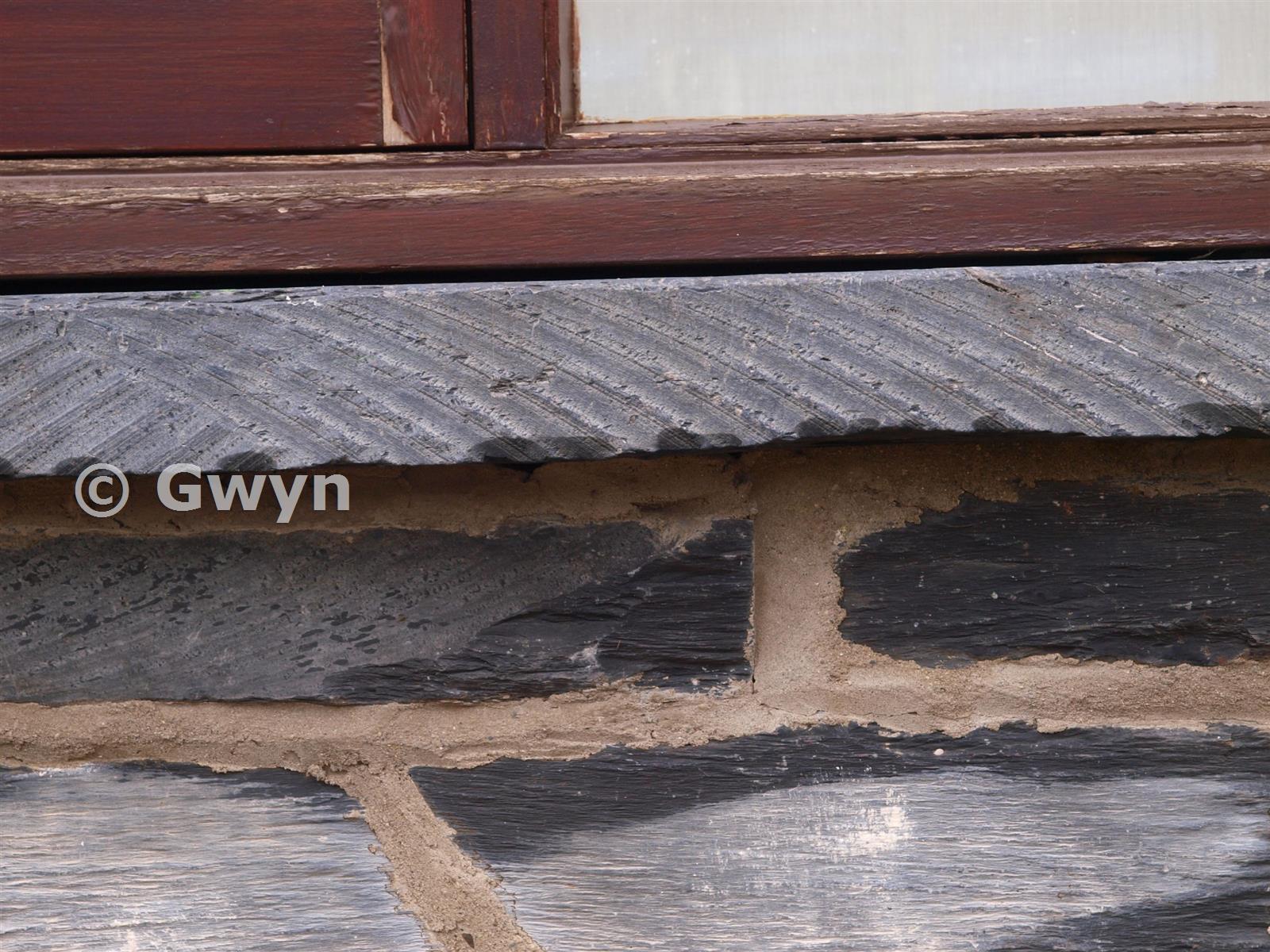 Hunter saw striation marks on window cill. Courtyard, Old Stables, Royal Oak Hotel, Betws-y-Coed. March, 2011.