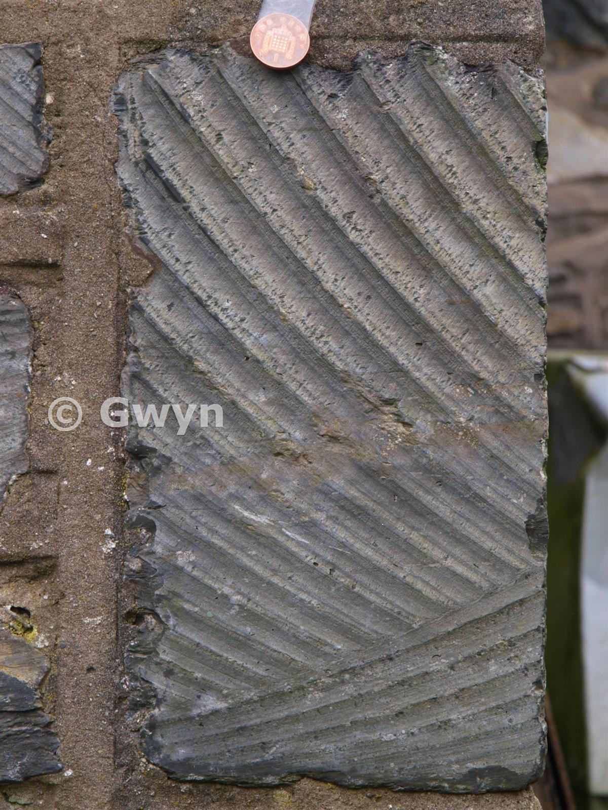 Hunter saw striation marks. The Memorial Hall, Betws-y-Coed. April, 2011.