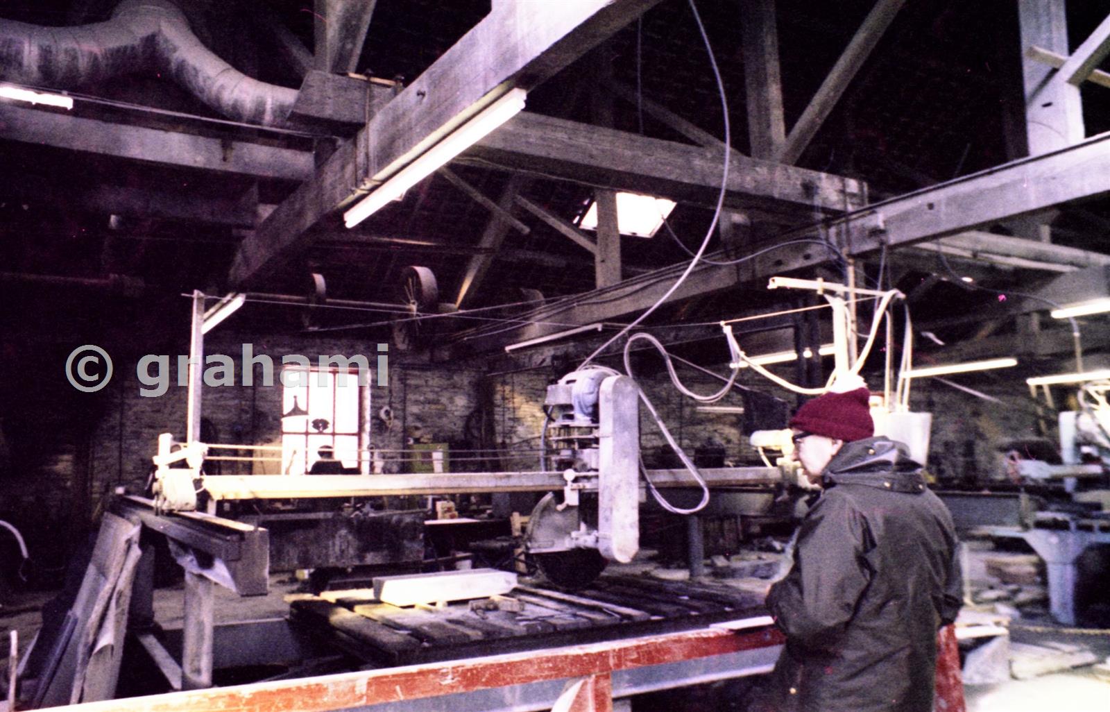 Another view in the mill - with one of the smaller diamond saws. Up in the rafters above the roof beams you can see part of the suction ducting which was installed from the 1950's onwards to combat the dust from saws, planers etc.