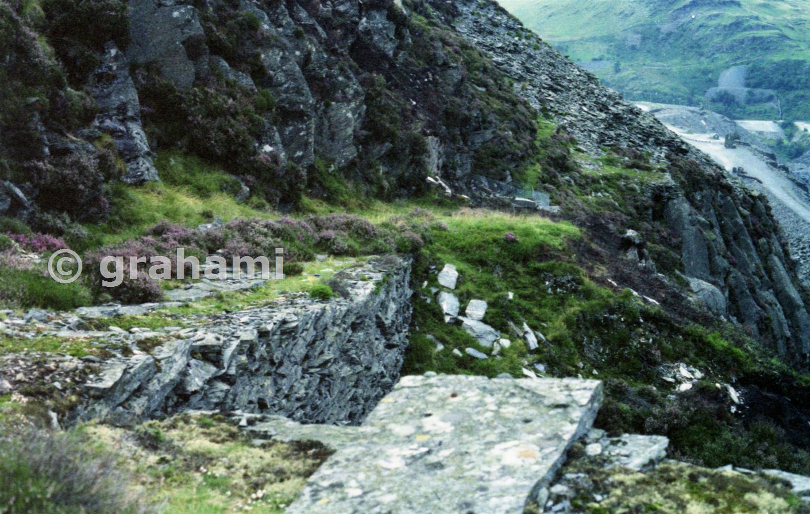 This incline was built by the Oakeley Co in the 1920's as part of a vain attempt to break into the architectural Green Slate Market (the GlanyPwll vein was greener than the main ffestiniog veins). It was not very successful.