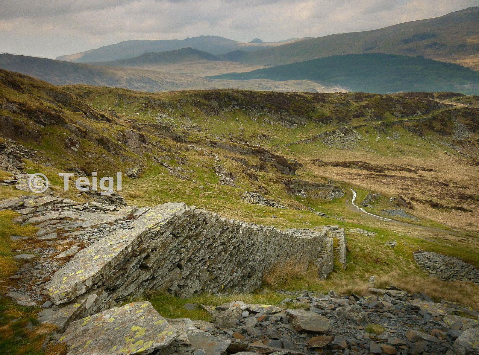 A very nicely built incline from the top level where there is an (almost) run-in adit and the beginnings of a quarry pit. Later work at the middle level cut the incline.