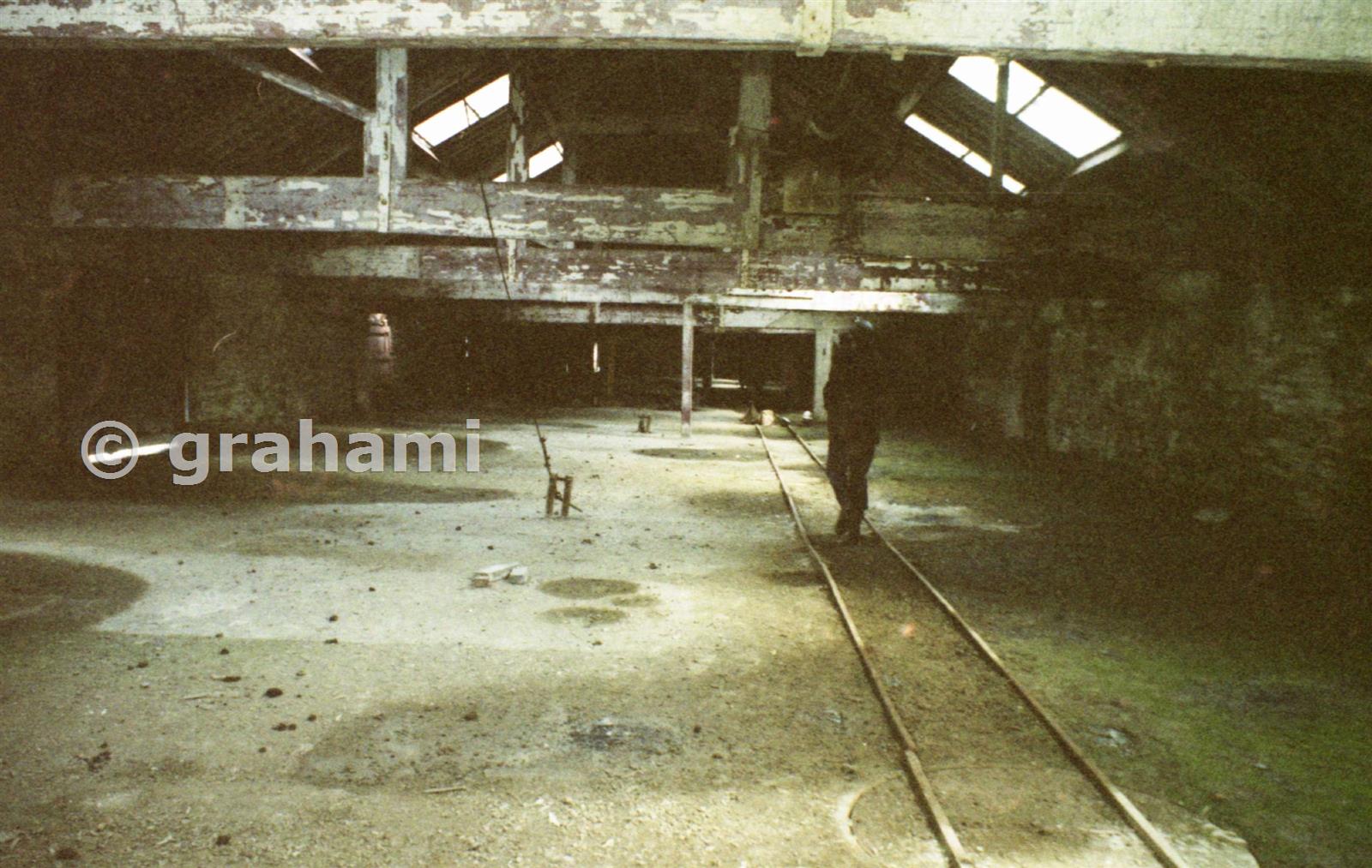 My flash just wasn't very good in those early days, but it does give an impression of the mill, which WAS very gloomy. The wire attached to the stake in the floor was to brace the timber roof frames and stop them going over! The mill floor had been concreted over at some time, dating from when they used it for unpacking/storing/packing explosives.