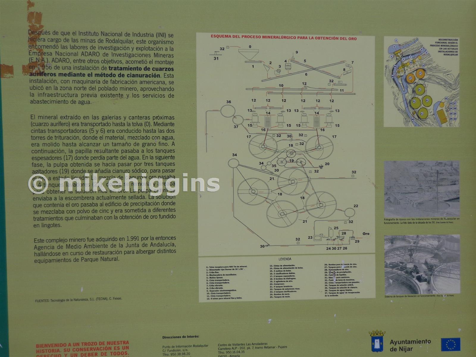 A board with a diagram showing the detailed process of ore treatment