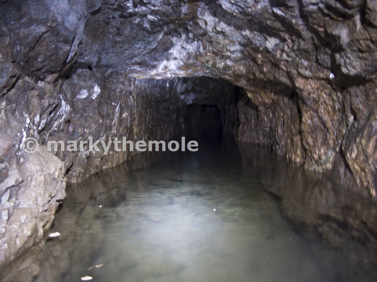 Jerah Copper Mine is approximately 20 metres in length. The first 5M slope downwards at about 20 degrees and are of walking height, the remaining passage is accessed via a low arch into water. The passage is approx 1.5M in height and half full of water. This photo was taken looking at the end of the mine.