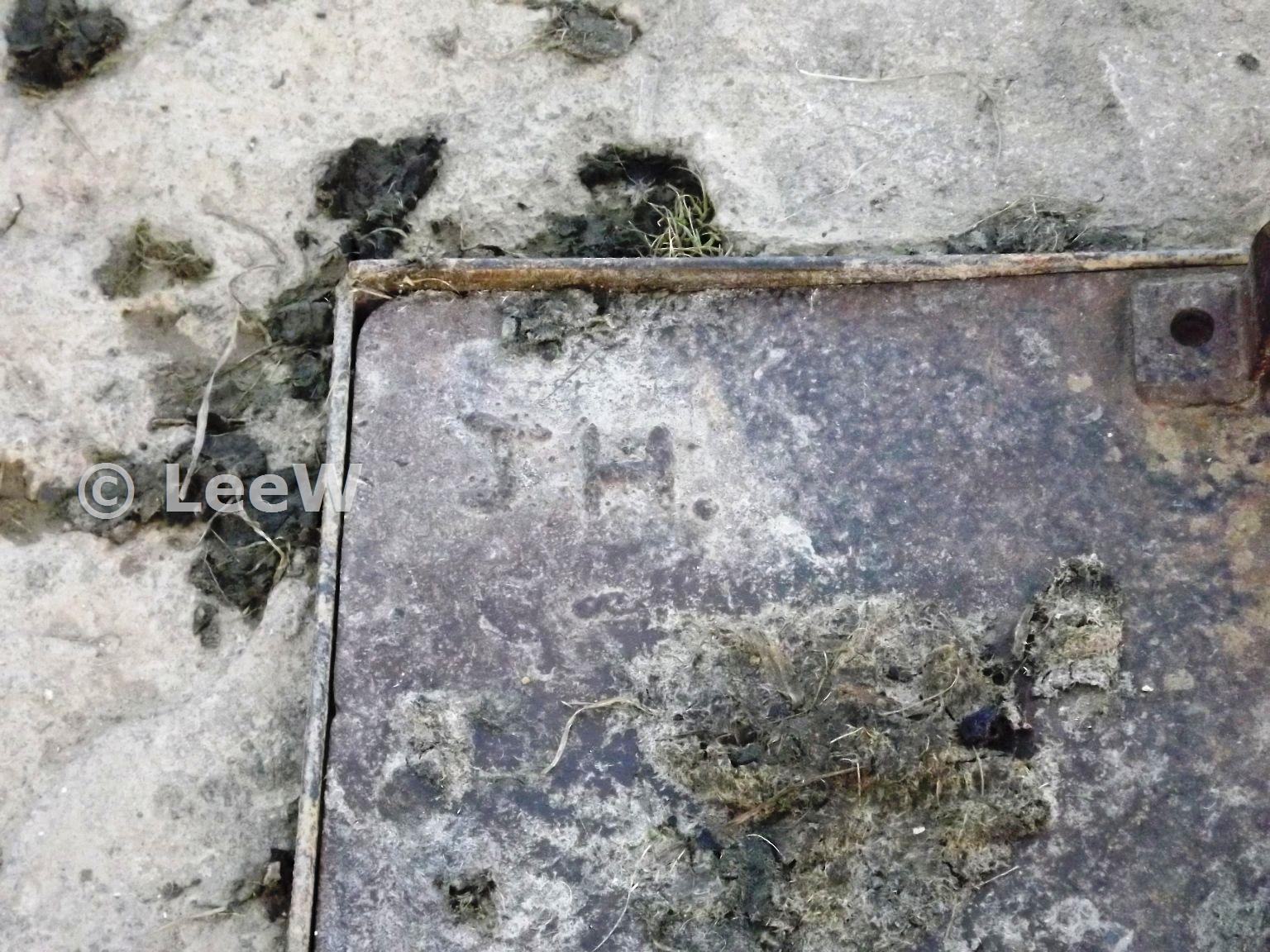 The initial J.H. on the shaft cover plate of James Hall Over Engine. Oct 2011