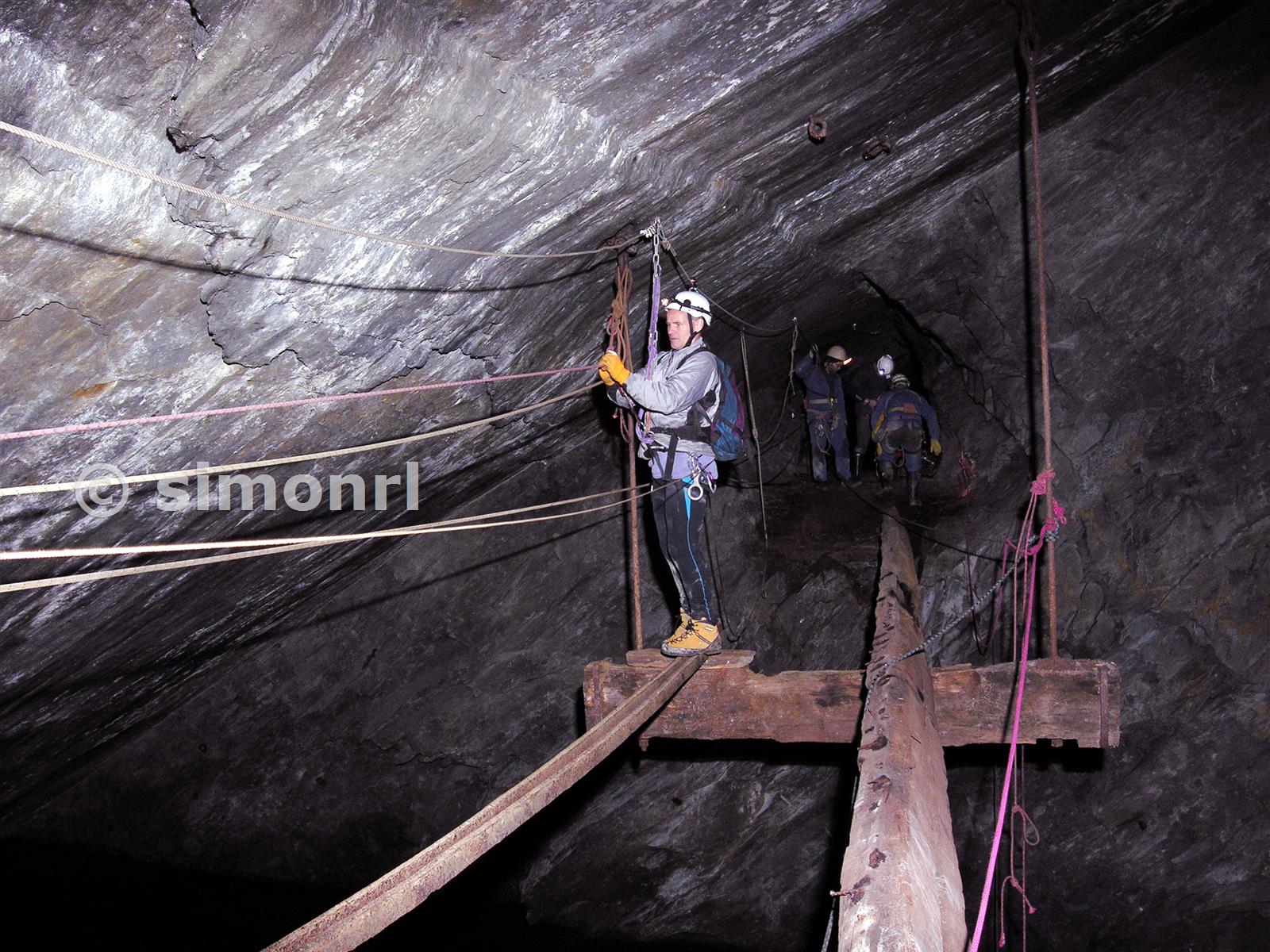 John (this one in grey) on the central support looking unreasonably relaxed.