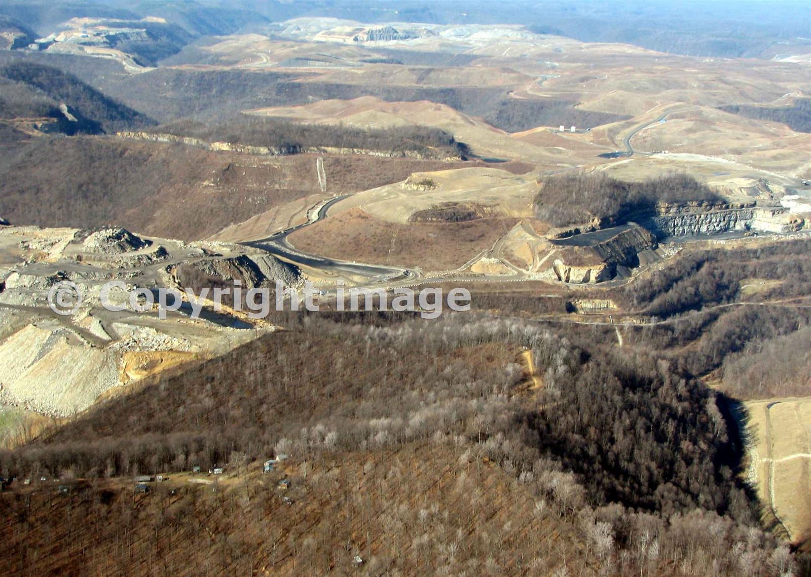 Note the cabins near the bottom at left. Larry Gibson's cabin is the right-most, highest cabin. Though the trees are without their leaves, the contrast between forested land and mountain-topped removed land is stark and stunning. Photo courtesy Vivian Stockman / www.ohvec.org. Also if aerial image courtesy SouthWings.org