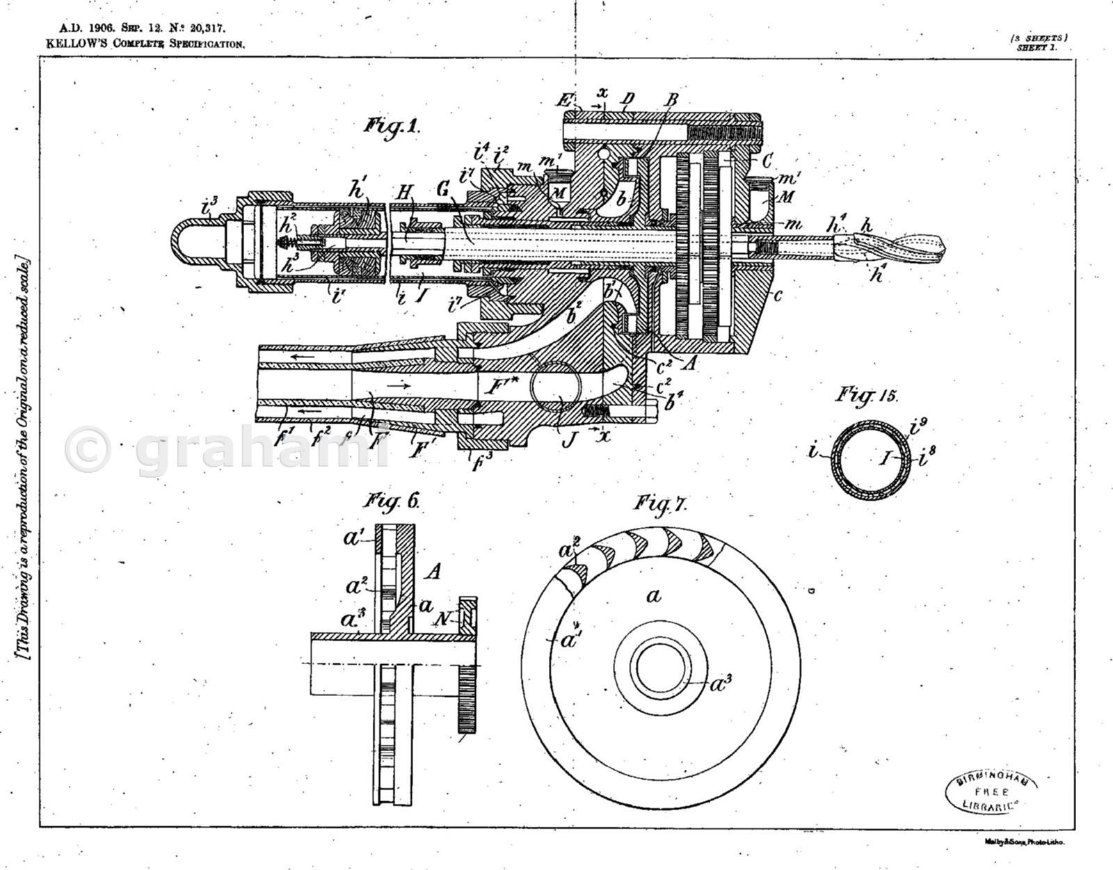 Patent drawing - change of drive from a pelton wheel to a turbine, change of gearing, and a coaxial supply system.