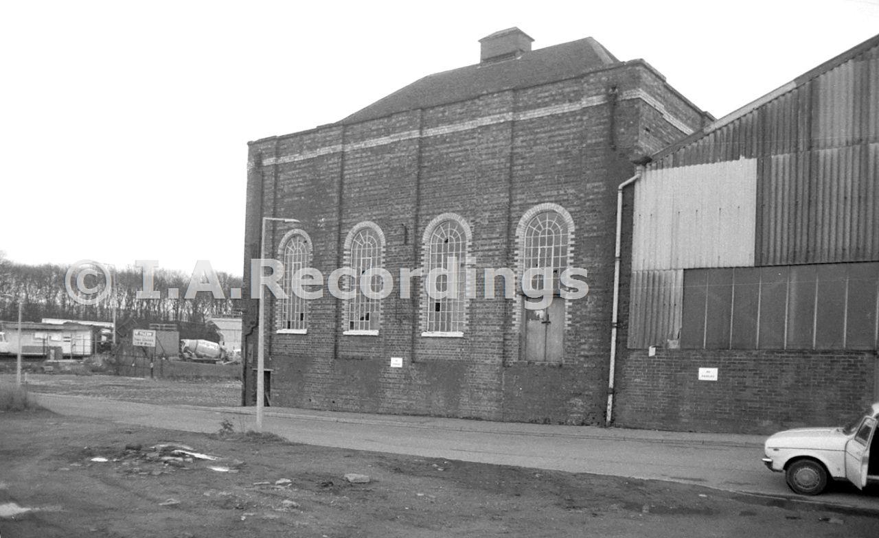 Side view of the 1870s engine house (looking South-east). It was built to house 2 horizontal-twin cylinder steam winders by John G. Stevenson & Co., Preston, Lancashire. Due to shaft sinking problems the engines were never really used and were sold to a Northern colliery in the 1890s. The building being converted to the electric power house. It survived the closure of the mine in 1967, being used as a council depot, until it was demolished in 1984.