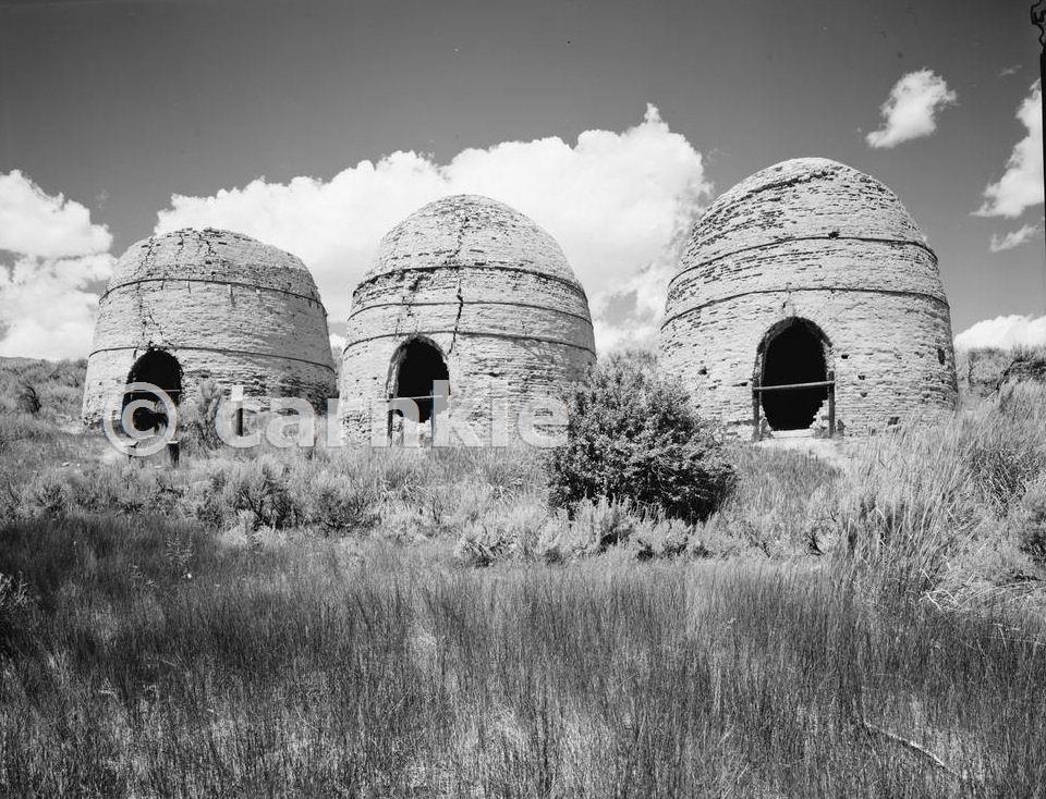 Front of northern kiln group, looking northwest. Note cables encircling the walls. Barricades at doorway were placed by Forest Service to prevent cattle from entering the kilns. Courtesy Library of Congress, Prints & Photographs Division, HAER Reproduction number HAER ID,30-LEDO.V,1-5