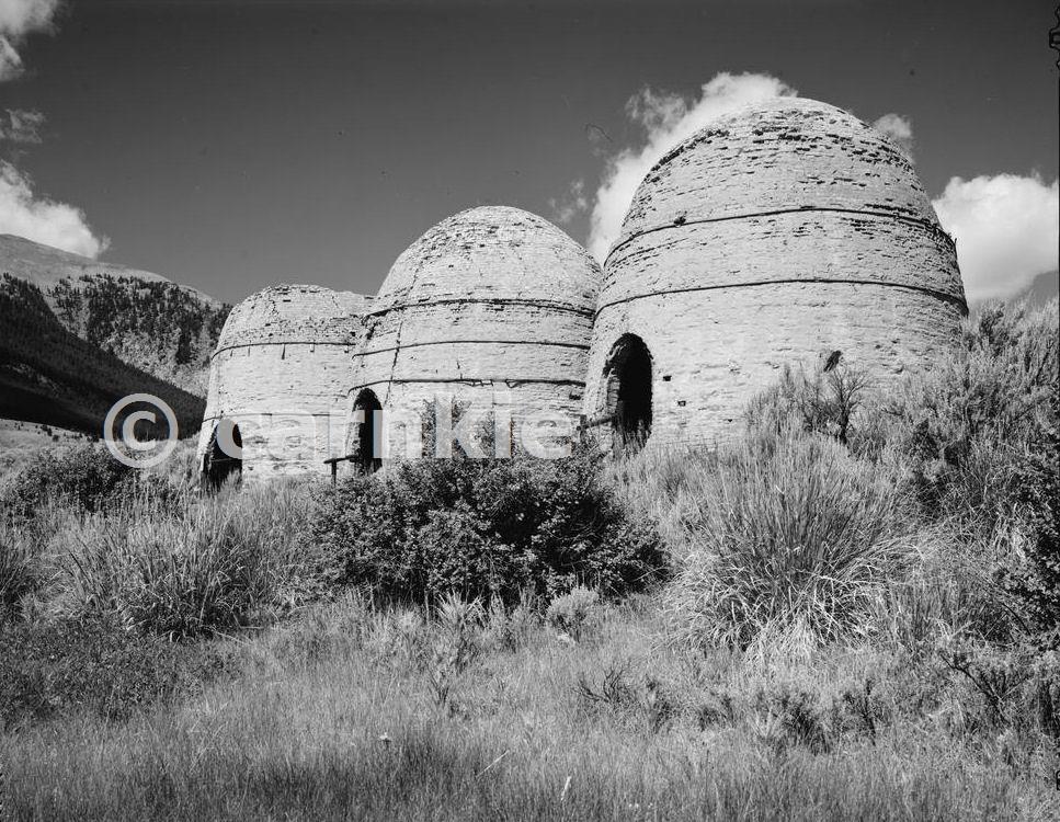 Front of northern kiln group, looking west. Vents, plugged with loose bricks and clay, are distinguishable in the nearest and farthest kilns, slightly above current grade. Courtesy Library of Congress, Prints & Photographs Division, HAER Reproduction number HAER ID,30-LEDO.V,1-6