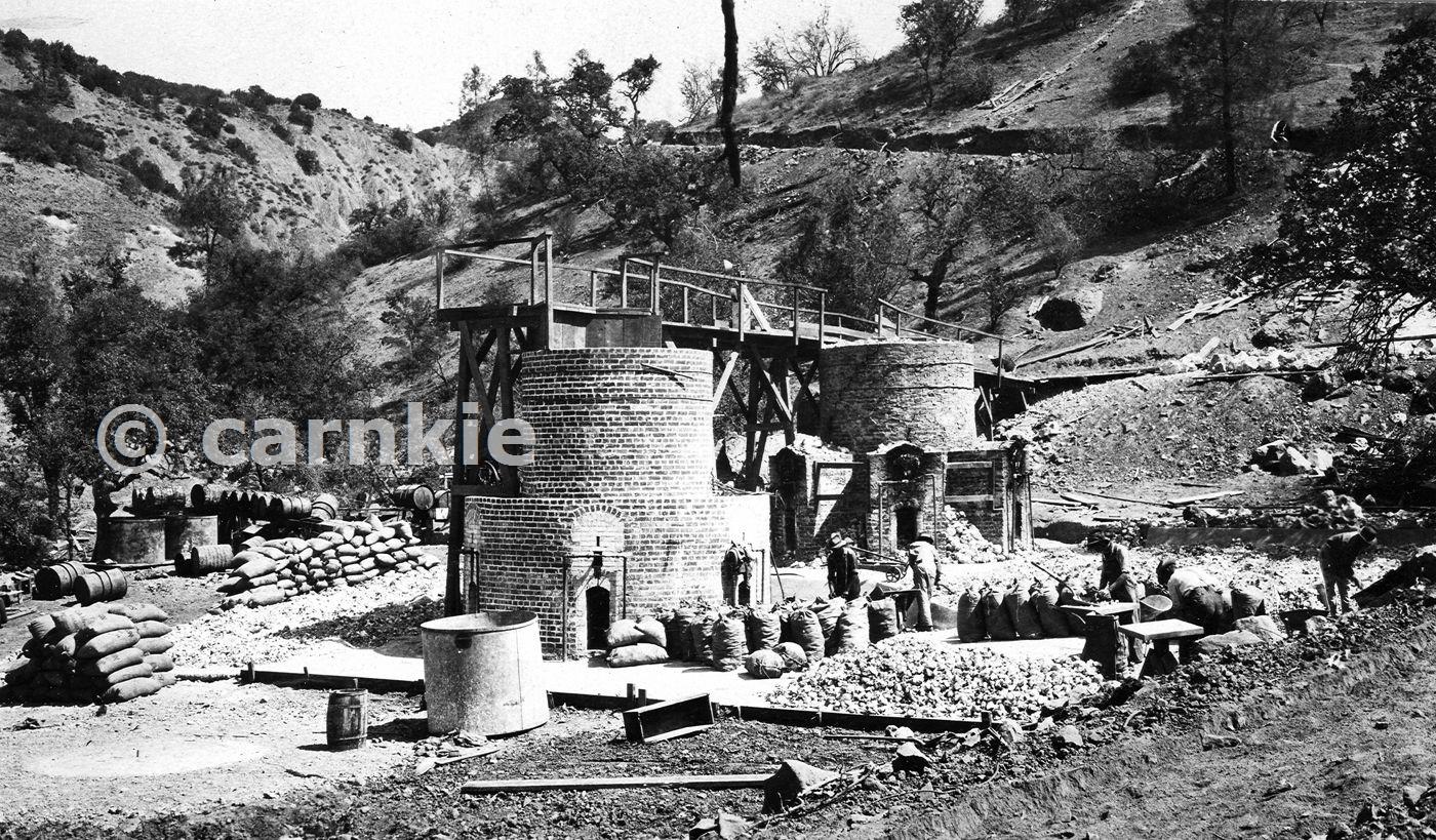 Kilns of Hoff-Price Magnesite Company, Larious Creek. Base for third kiln in lower left corner. San Benito County, California. September 18, 1917. Courtesy U.S. Geological Survey. The USGS home page is http://www.usgs.gov