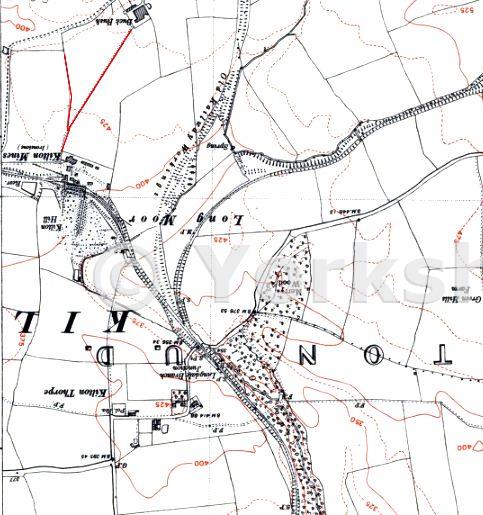 The field boundaries from the photo are marked in red. Source: NLS Yorkshire XVIII.NW (includes: Kilton; Moorseholm; Skelton with Brotton; Stanghow.) Revised: 1950 Published: 1952 It seems that the shot was captured looking almost due south