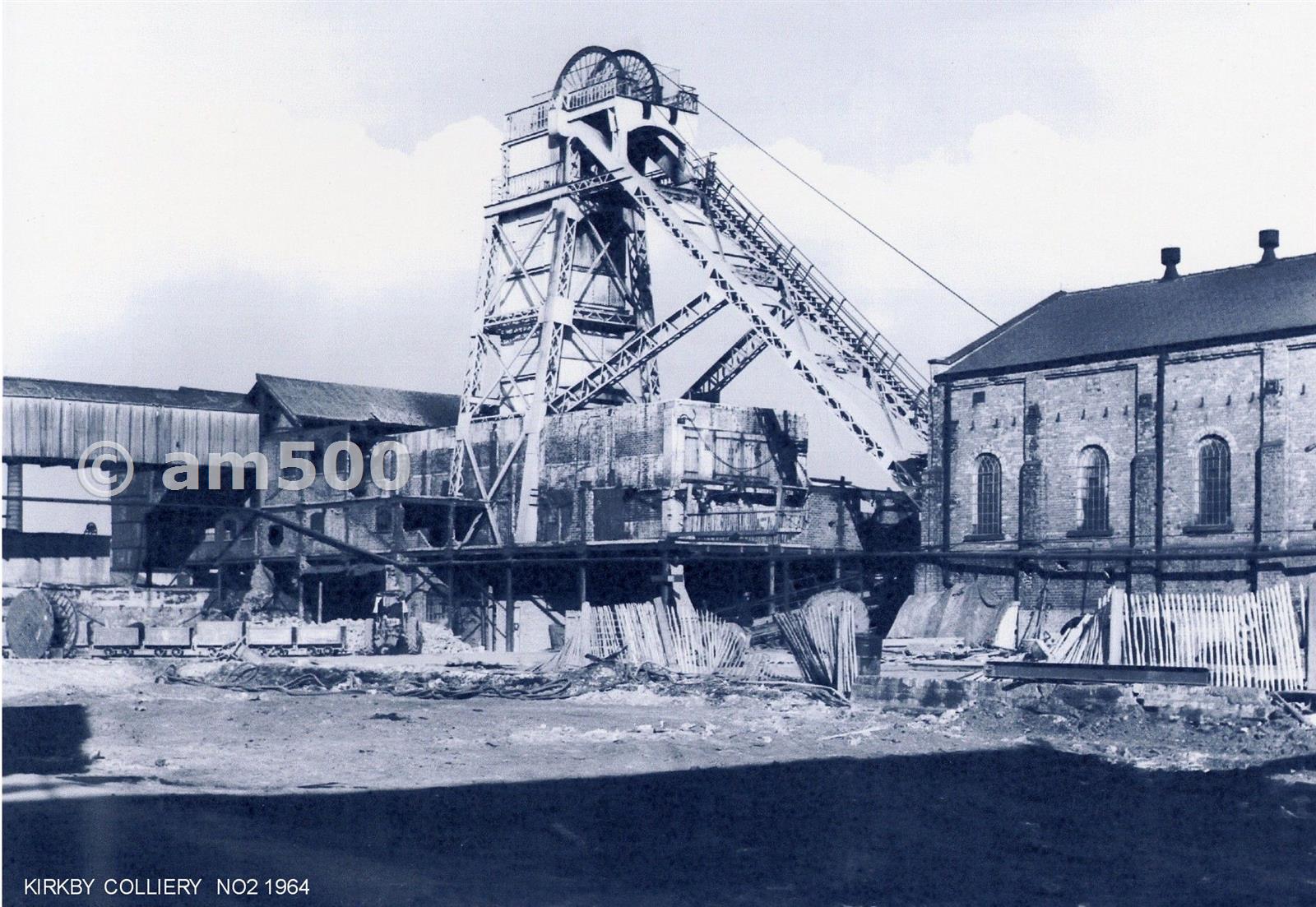 No2 Shaft or the North Shaft was sunk down to the blackshale seam at a Depth of 641 yards. The High Main seam was opened out in 1942 from No3 shaft and the Pit Bottom Insert was completed after driving back to the no2 shaft. Longwall faces were opened out in 1942,1944,1946 and 1953 but in each instants this method of working proved unsuccesful. Water bearing permian strata lies unconformly over the carboniferous measures within the Colliery take, the interval between the base of the permain and the high Main being only 40 yards in the Vicinity of the shafts. Induced breaks in the strata from Longwall faces allowed water to percolate into the workings and Longwall mining was abandoned in favour of the Room and Pillar system of Mining with a 50% extraction, An extensive area to the east of the shafts was succesfully worked by this method between September 1943 and June 1956. The winding of High Main Coal at no2 Shaft ceased in 1956, Coal then being conveyed to the surface via a cross measure drift, surface to High Main, dipping at 1 in 4, completed in December 1955. Another Drift dipping at 1 in 4 from the surface to the threequater seam intersected the high Main in July 1965 and a Connection was made to 30's left hand gate for Ventilation purposes. By 1955 the workings were 1 mile to the east of the shafts and the interval between the base of the permain and the High Main Seam had increased such that the Longwall method of working was possible. A further extensive area to the east of the shafts was worked by this method, until 5th April 1968, when the seam was last worked. Three connections were made with Newstead Colliery High Main workings in 1962 and 1967. The High Main was worked continuously from 1942 to 1968 when the seam reached "Economic Exhaustion".