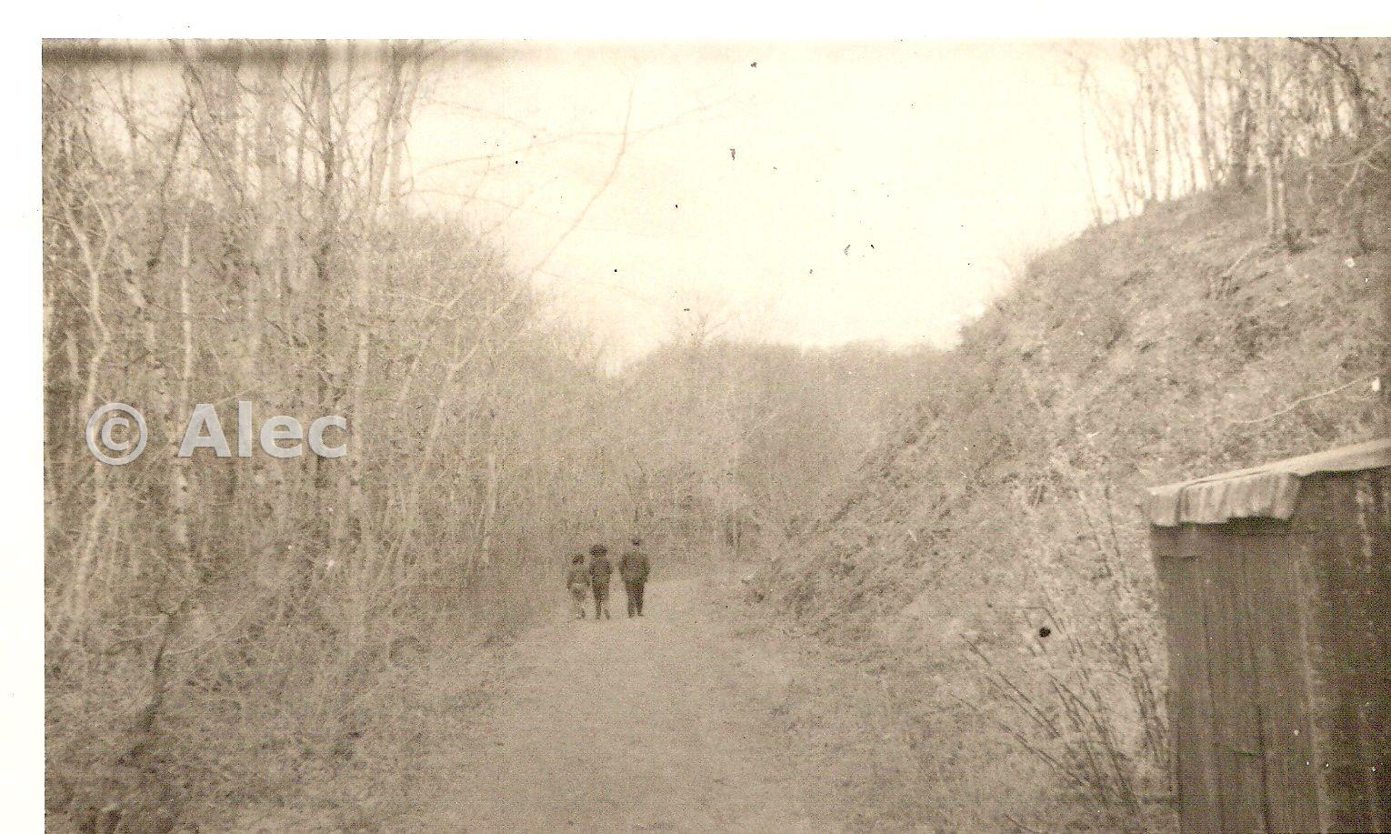 This is the L and CR''s trackbed at Wood Hill in 1964. Duchy woodland R and the Wood Hill-Crossman''s Wood level crossing is ahead, out of sight. In 1964 the crossing gates were still in position, closed after the last train passed in 1917. The Woodland underwent a change of ownership in 2017 and is being actively managed using heavy equipment: the crossing gates with their massive granite hinge posts are long gone. A few stretches of GWR fence strainers and post-and-wire fencing cling on- these were part of an extensive refurbishment of the Caradon Branch from 1909 to at least 1912, by the GWR''s Plymouth Divisional Engineer, H D Smith. Smith used secondhand materials displaced from elsewhere in his Division, but even this was of a signficantly better quality than the L and CR''s life expired permanent way. [Revised 13 December 2019]