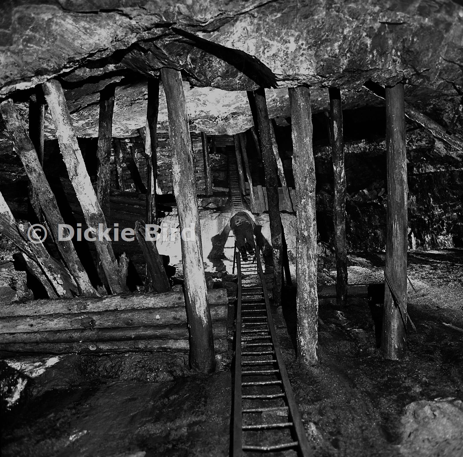This long miners ladder went up to the surface from the site of the turbine. Looking at more recent pictures, much in the way of blockages seems to have occurred since this picture was taken.