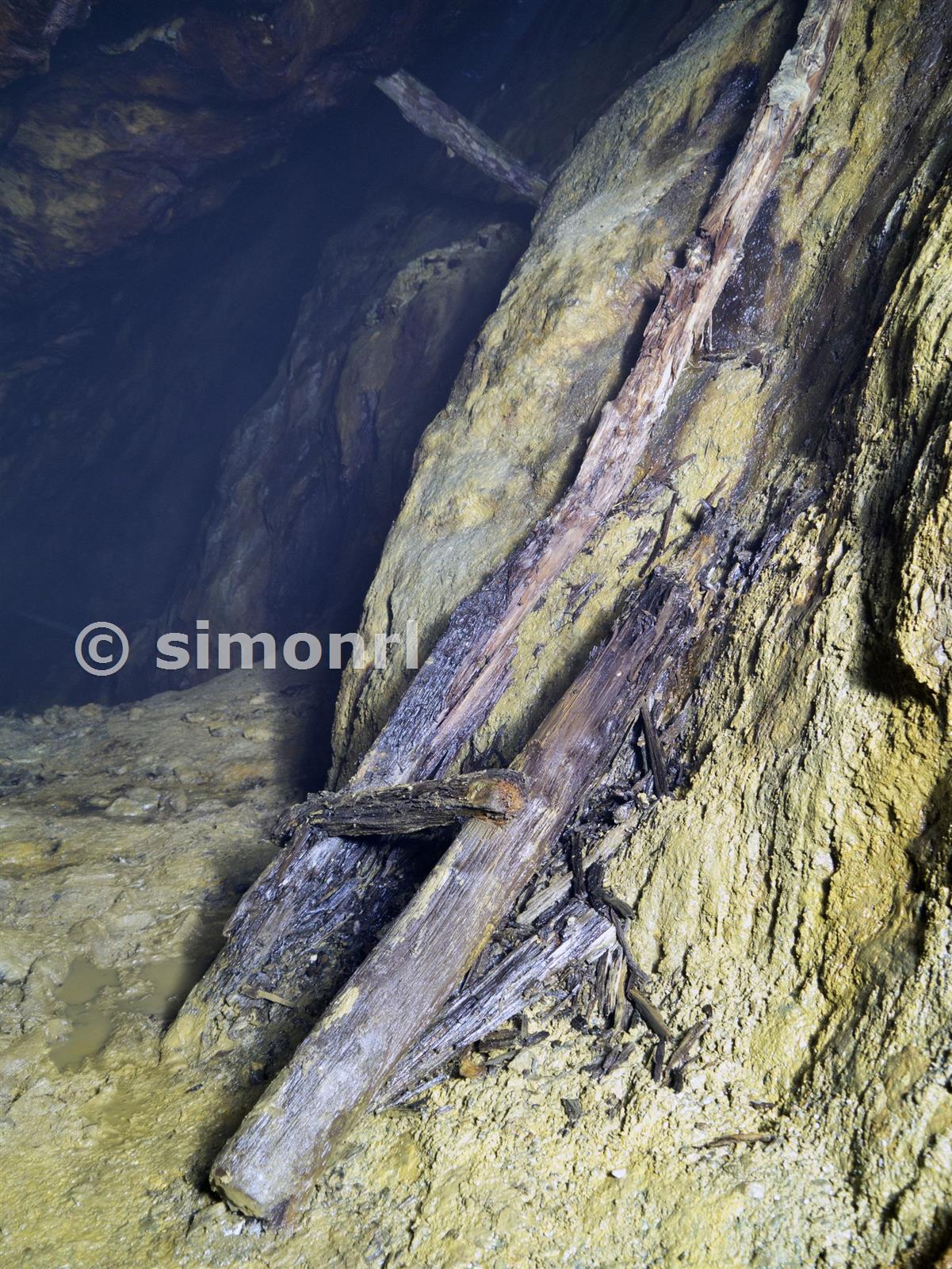 Remains of a very crude ladder Llwyndu Copper Mine August 2013