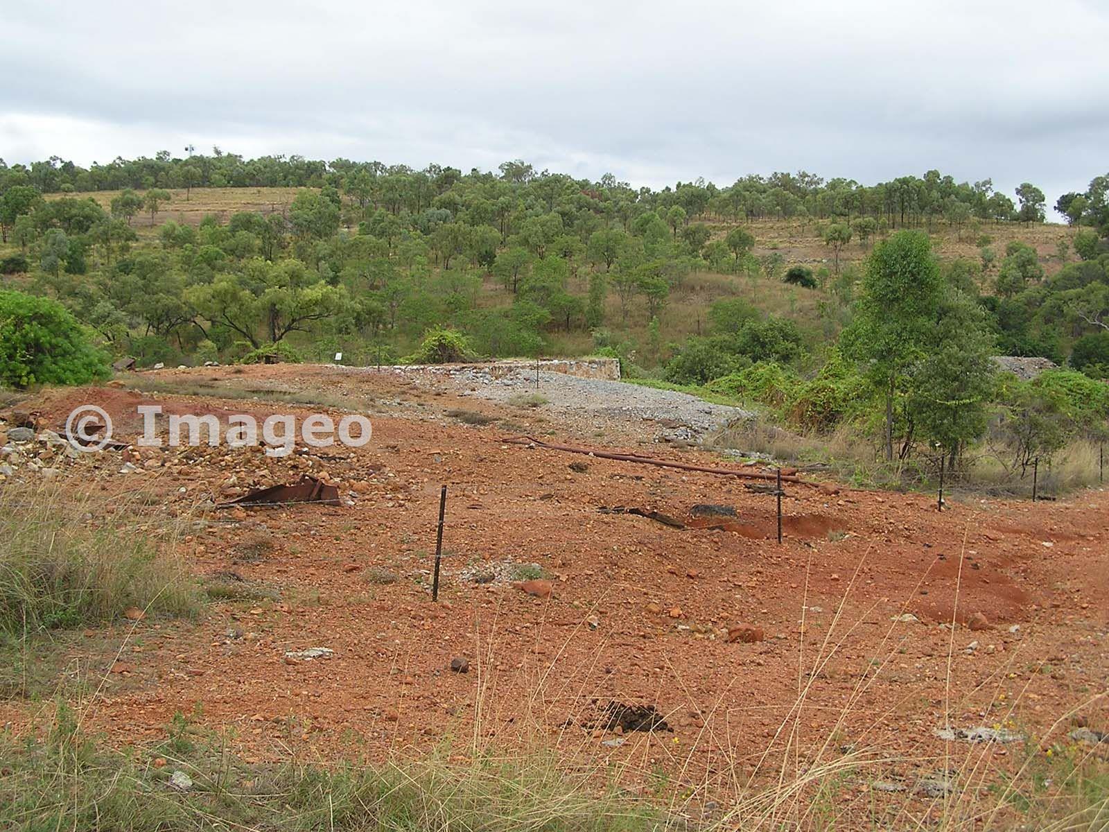 A view across the Lady Jane site, looking south. Rehabilitated waste dump from the Red Dome mine in the background.