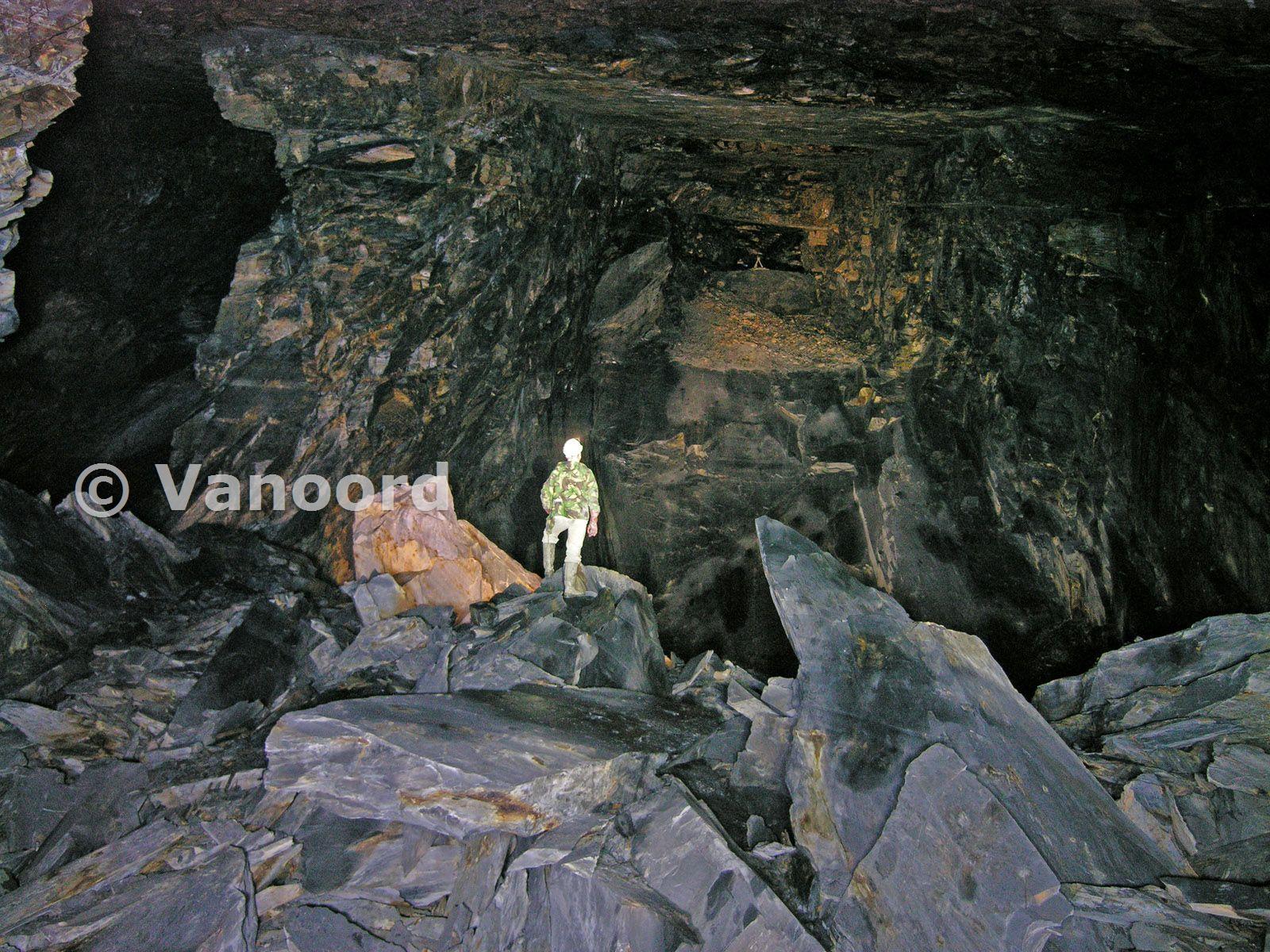 This is the bottom of the previous chamber, looking back up towards the triangular marker, which can just about be made out in the distance.