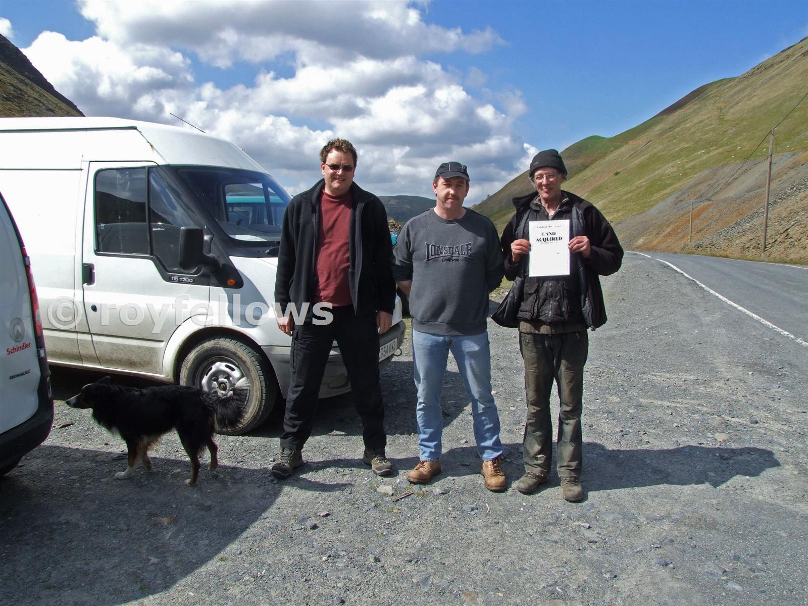 Dark Prince, Manicminer, and Barry Clarke pose with a "Land Acquired" notice