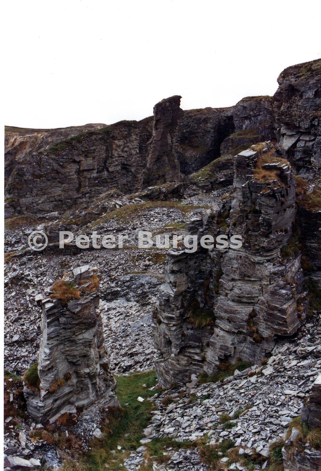 View north across the quarry. Pinnacles of poor quality stone are evident.