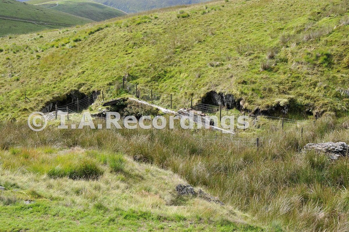 Large waterwheel pit originally for a 60ft waterwheel (replaced c1900 by a 56ft. wheel by John Mills & Co. Llanidloes) for pumping at Engine shaft. The wheel pit is now fenced off and more overgrown since last our 2002 visit.