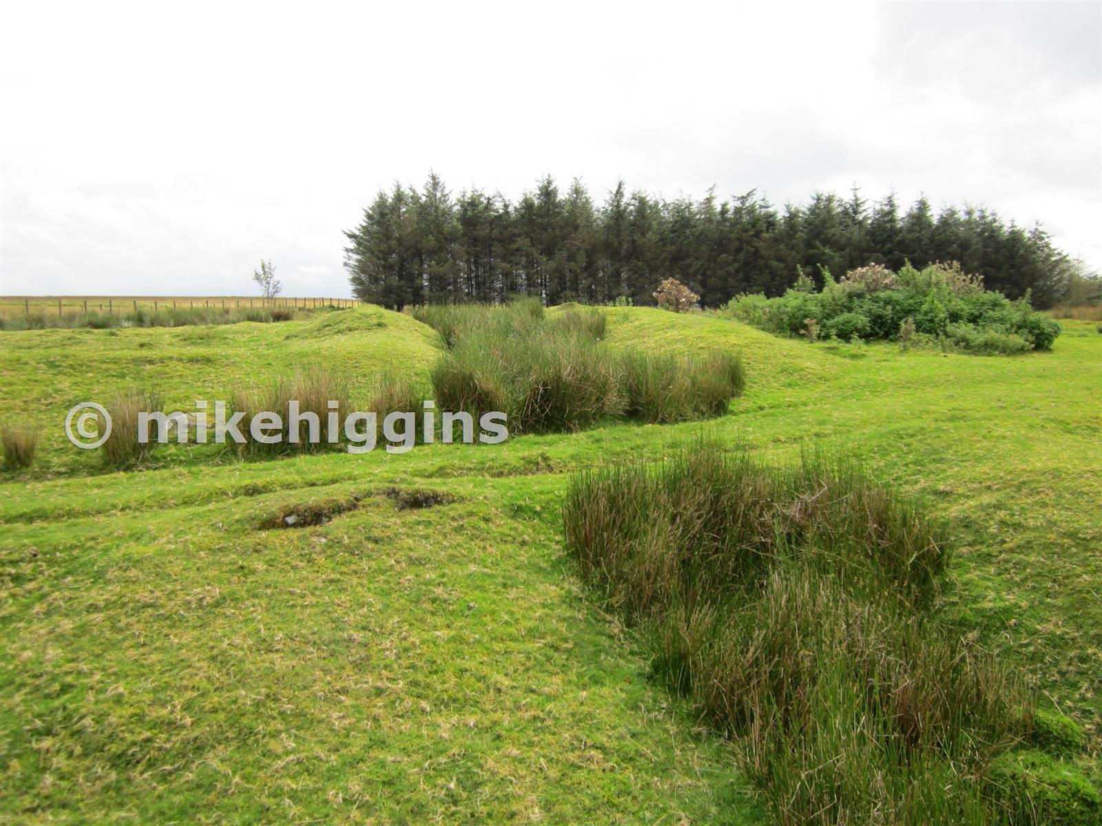 The eastern of the 2 channels carrying water presumably to the water pressure engine shaft. The source of this water is not apparent. David Bick (The Old Metal Mines of Mid-Wales, Part1, page 36) states "the leat that brought water is to the right of the track from Ffair Rhos to Esgair Mwyn". There is now no obvious trace of this leat and as both places lie downhill from Llwyn Llwyd neither one is the source.