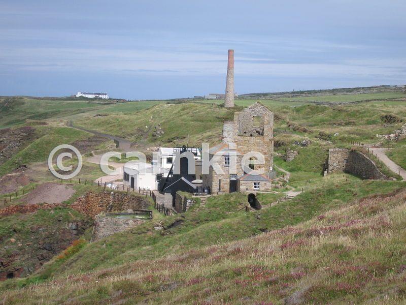 Pump and winder houses and headgear stamps engine stack to the right rear of pump house. "Photo by Tom Corser www.tomcorser.com. Licensed under Creative Commons Attribution ShareAlike 2.0 England & Wales