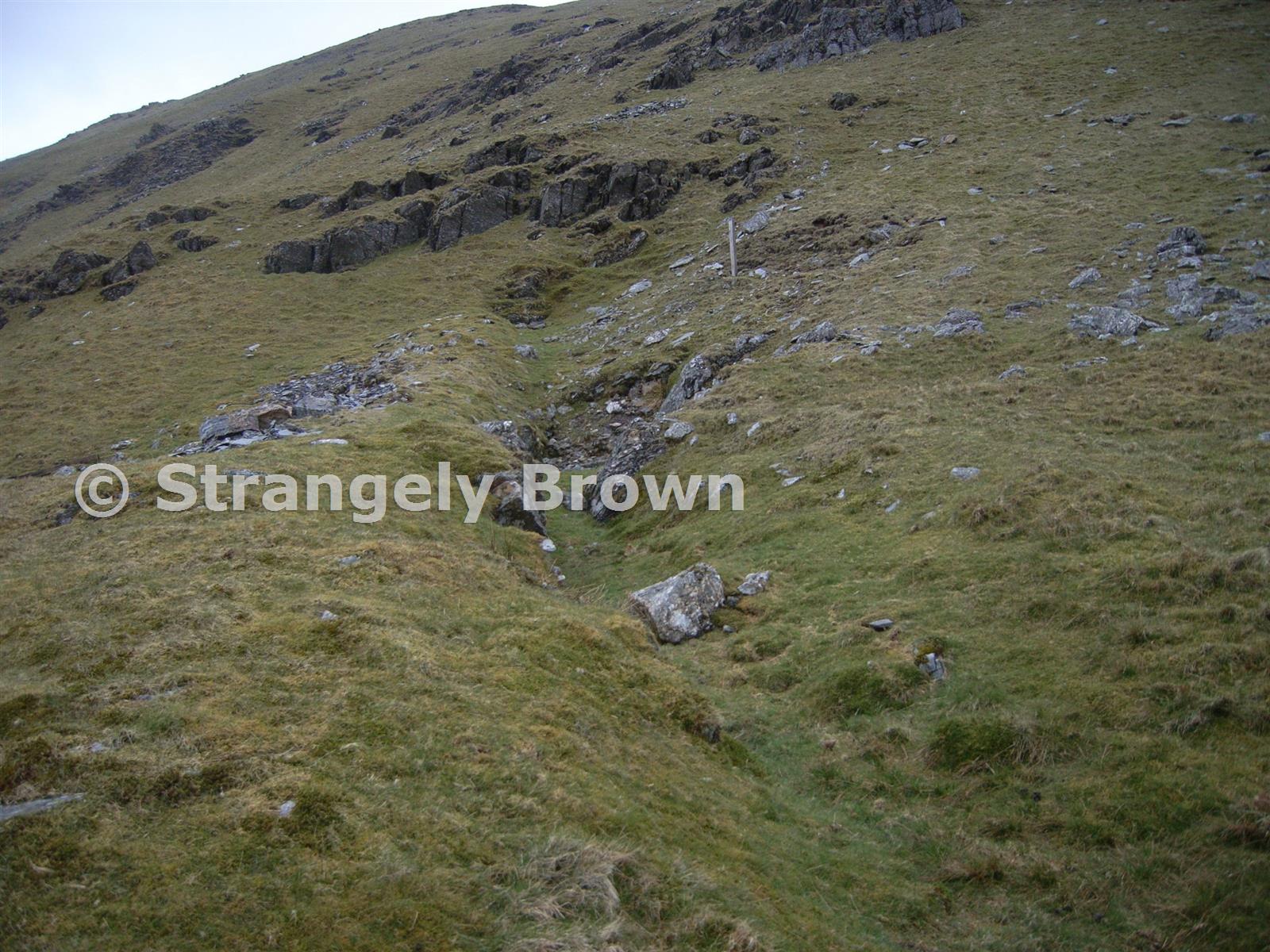 Much well established vegitation (mostly grass) has filled the cutting to the adit.