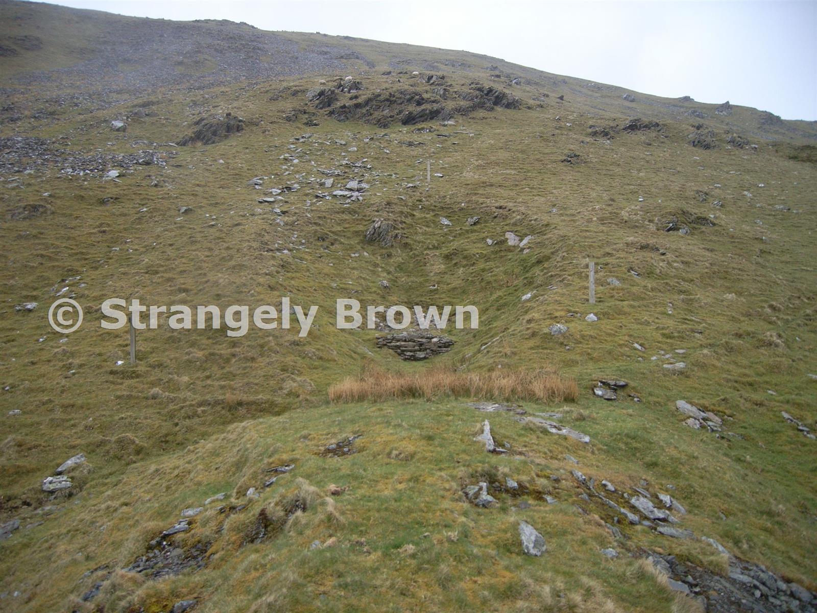 Is there an entrance? A low dry stone wall has been built across and then filled up behind, whether naturally or deliberately isn't possible to tell.