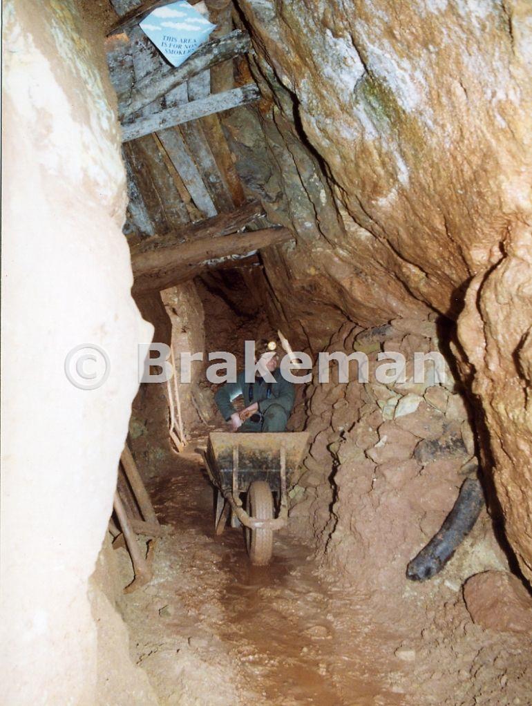 The current far end of the level above the Blue shaft, in the process of being cleared of fallen miners spoil, circa 1987
