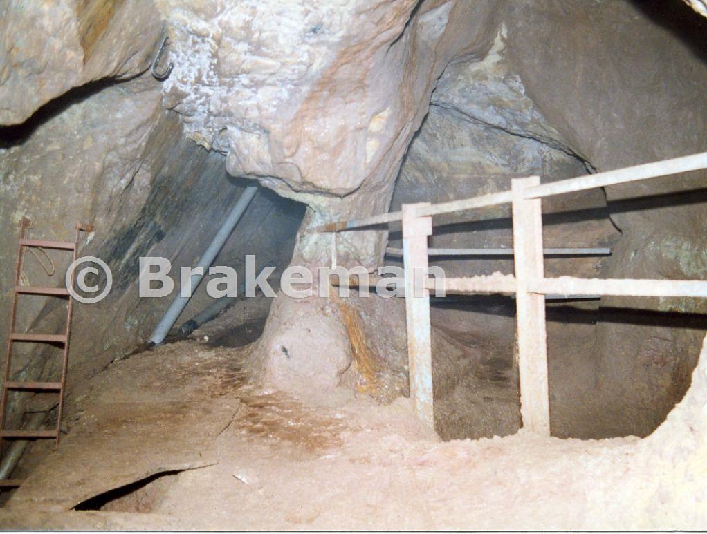 This is the level above the Blue shaft, the barriers to the right is the intersection with the Bear pit shaft, circa 1987