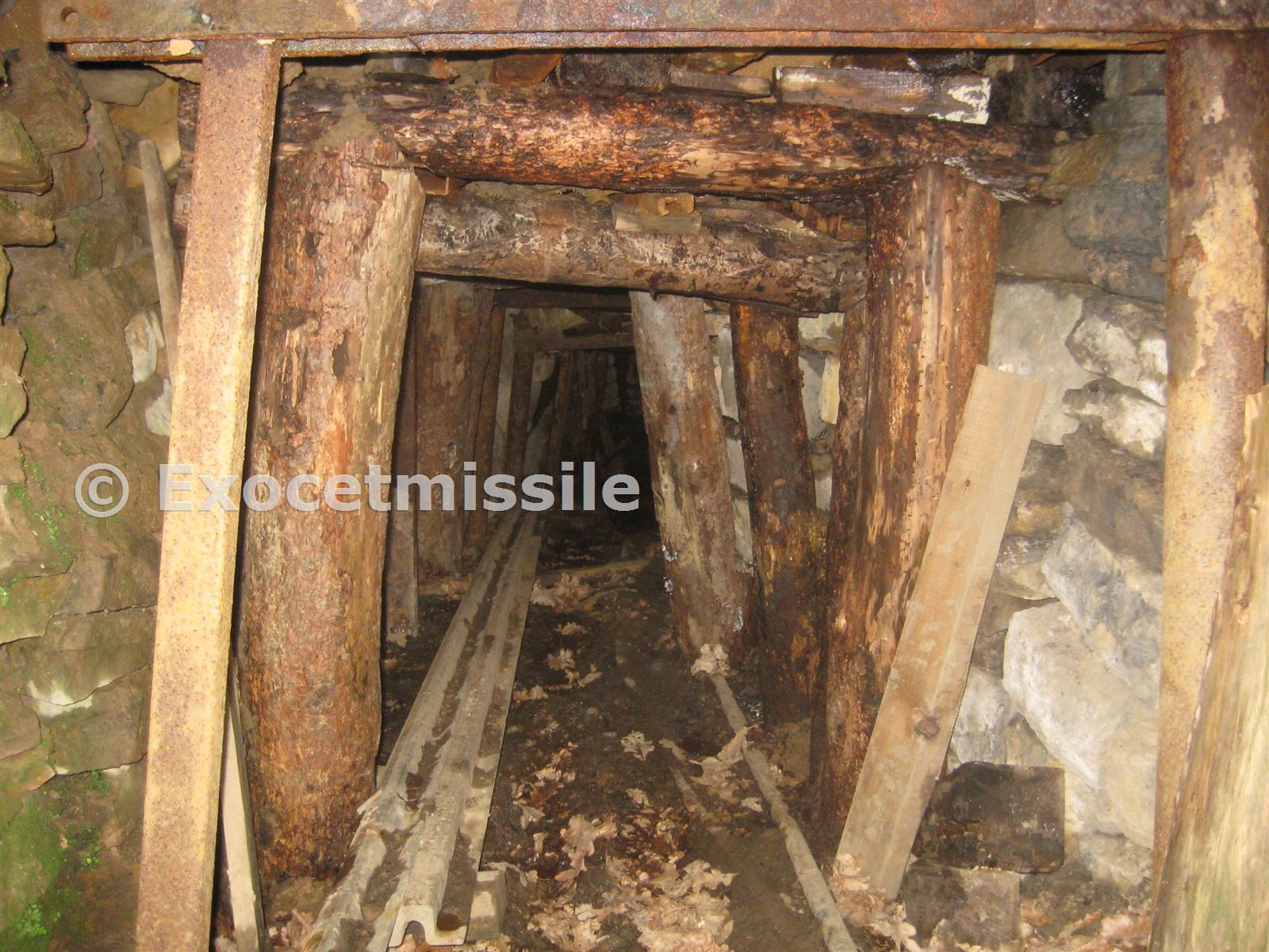 Inside the level, very tight. Only about 2 foot wide and 3 foot high. Note the wedges and bits of metal holding up the roof!