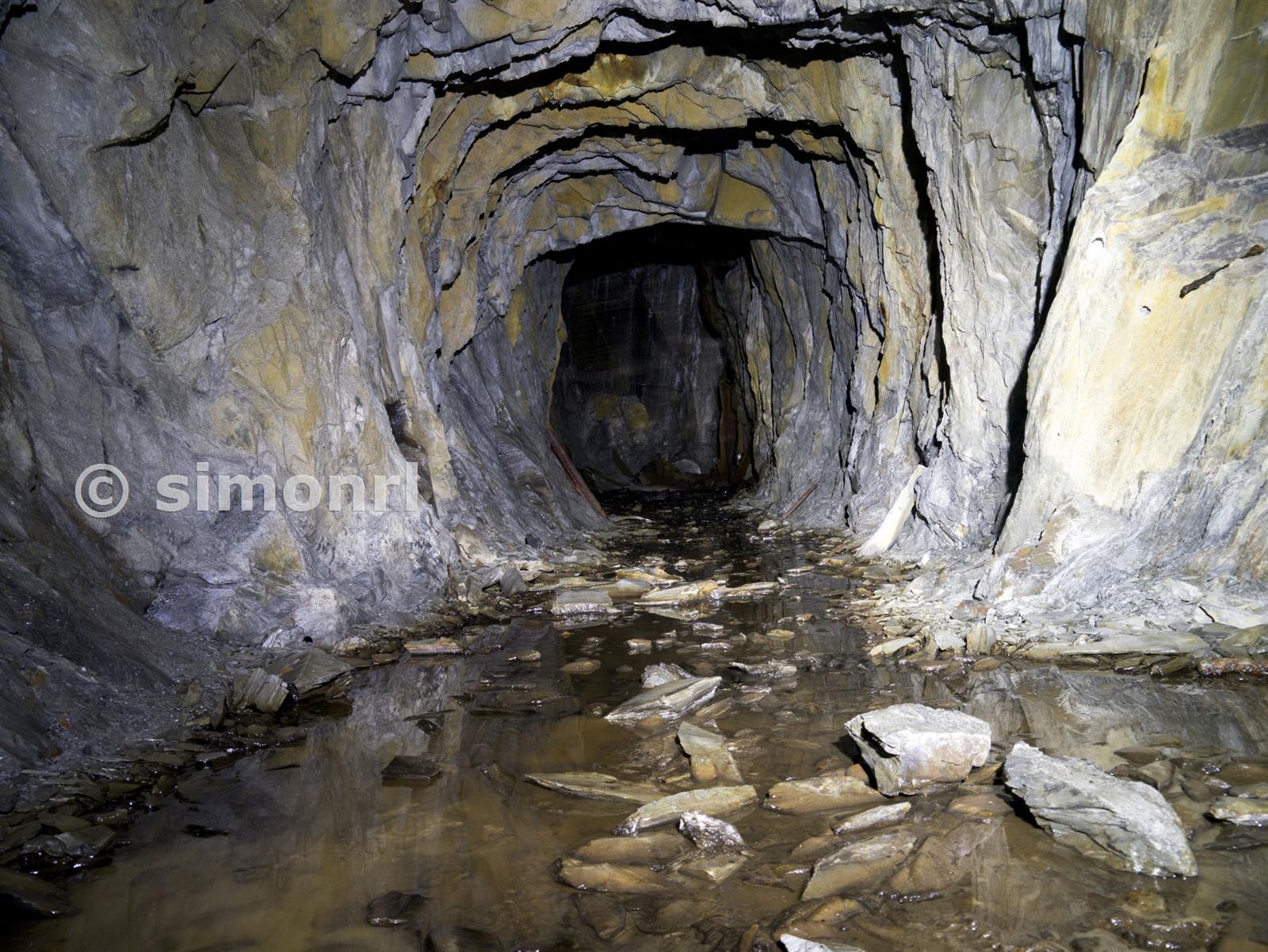 Lower level looking towards adit Hafod Uchaf Slate Quarry May 2014