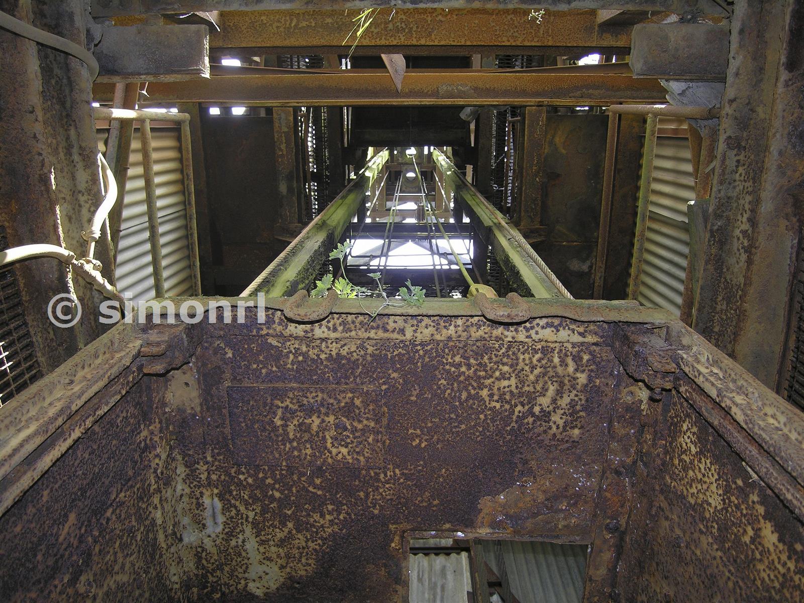 Looking up from the number 2 shaft lift cage Groverake Fluorite Mine August 2009