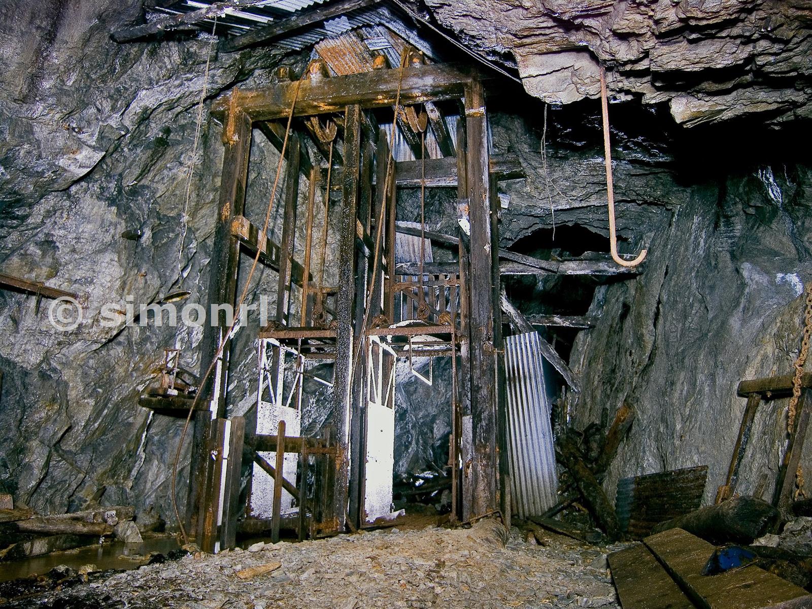 The lift cages, deep adit level, Bwlchglas Lead Mine. 15/05/2009