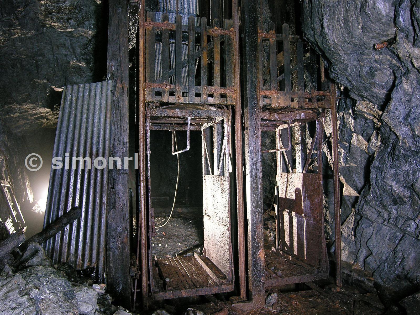 Another view of the lift cages, this time from the opposite side (as approached by the descent from the intermediate level).