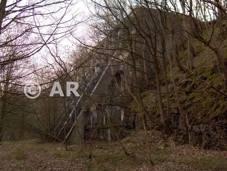 This large bank of lime kilns is intact, other than having the top charging holes capped.