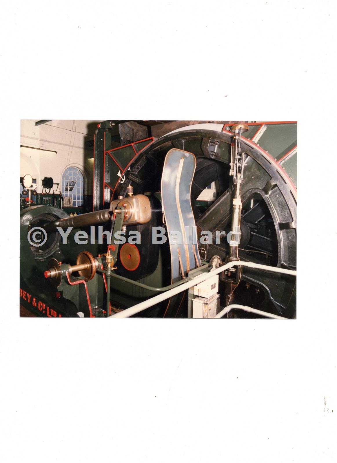 This is the Linby No1 shaft winding engine which remained in use until the end. Made by Robey & Co of Lincoln in the early 1920s replacing the earlier steam winder.(not known to me). This was the larger of the two Robey engines with an output of 970 KW (1300 hp) the No2 being about 1000 hp.. It was installed in 1922. Under Men/Material service its speed was limited.