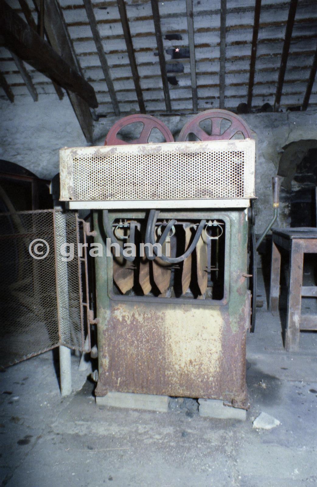 The plates shown here raised i.e. "Off" were lowered into the tank containing electrolyte (Oakeley used water!) and at full depth were short circuited (full on).