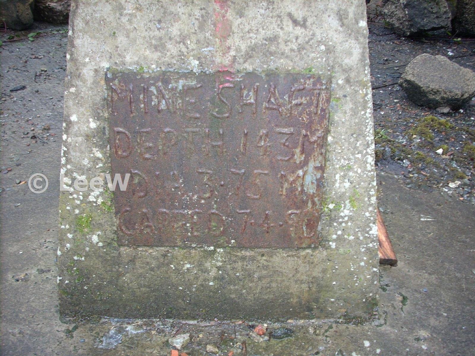 Shaft marker reads 'Mine Shaft; Depth 143m; Dia 3.75m; Capped 7.4.90'