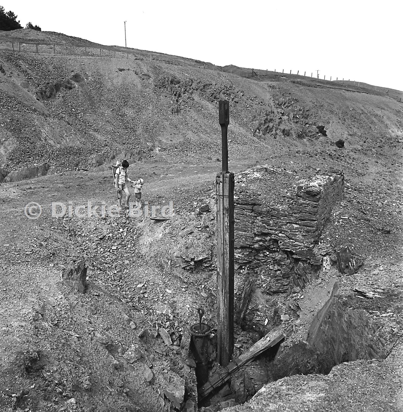 Llechwedd Ddu shaft with pump rod and rising main. 1976