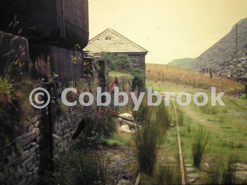 Transhipment yard at foot of Llechwedd incline. Standard gauge main line into Blaenau in background, circa 1979.
